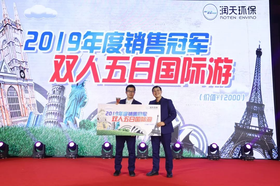 公司銷售總監(jiān)徐劍向銷售冠軍頒發(fā)的銷售冠軍獎(jiǎng)勵(lì)是,雙人五日國際游,希望他能開拓眼界,銳意進(jìn)取,與潤天共同走出國門,走向國際。