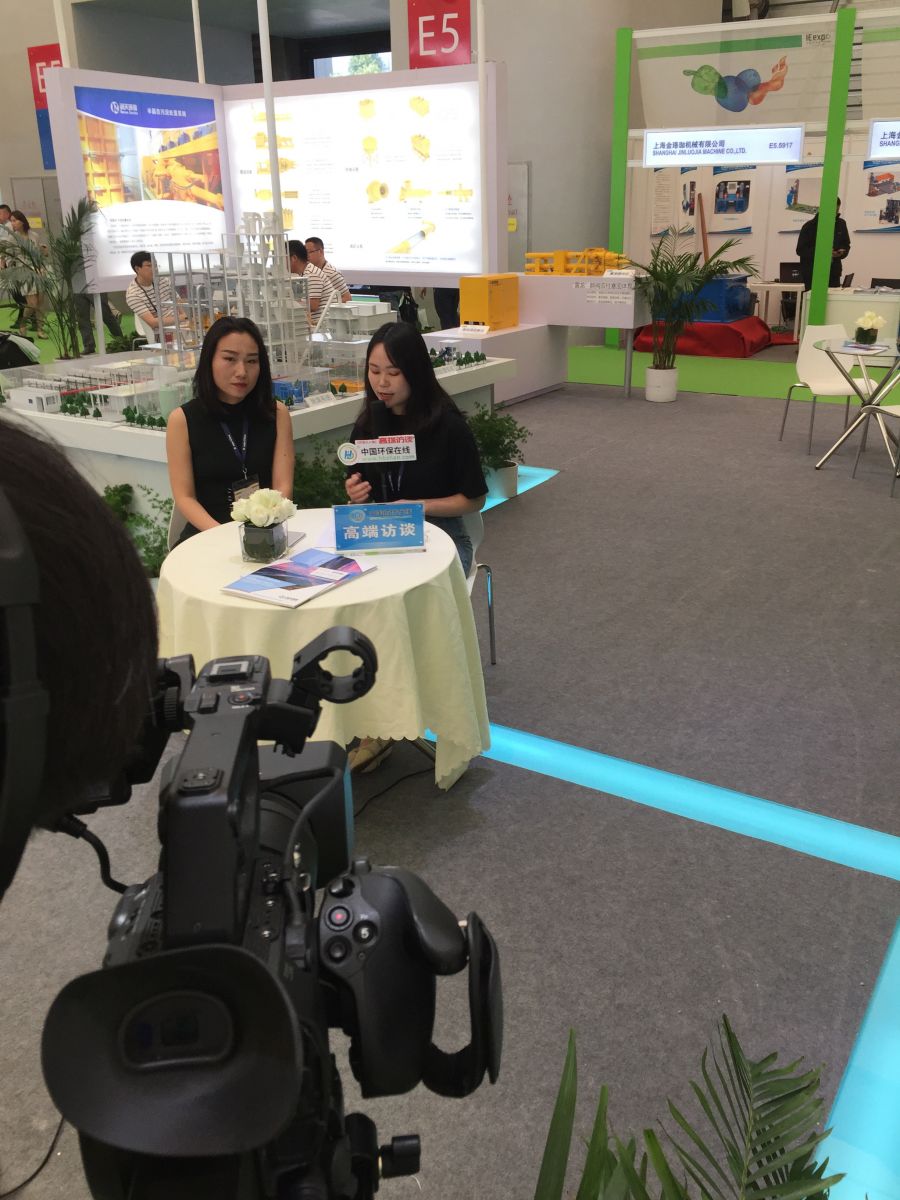 【上圖】在第十九屆中國(guó)環(huán)博會(huì)潤(rùn)天展廳,包括中國(guó)環(huán)保在線《高端訪談》欄目在內(nèi)的等多家重量級(jí)行業(yè)媒體,紛紛聚焦?jié)櫶飙h(huán)保。圖為潤(rùn)天執(zhí)行董事董婧祎女士(左)接受采訪。